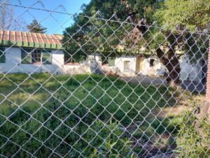 El alambrado rodeando el edificio abandonado de la ex colonia que pretende la escuela